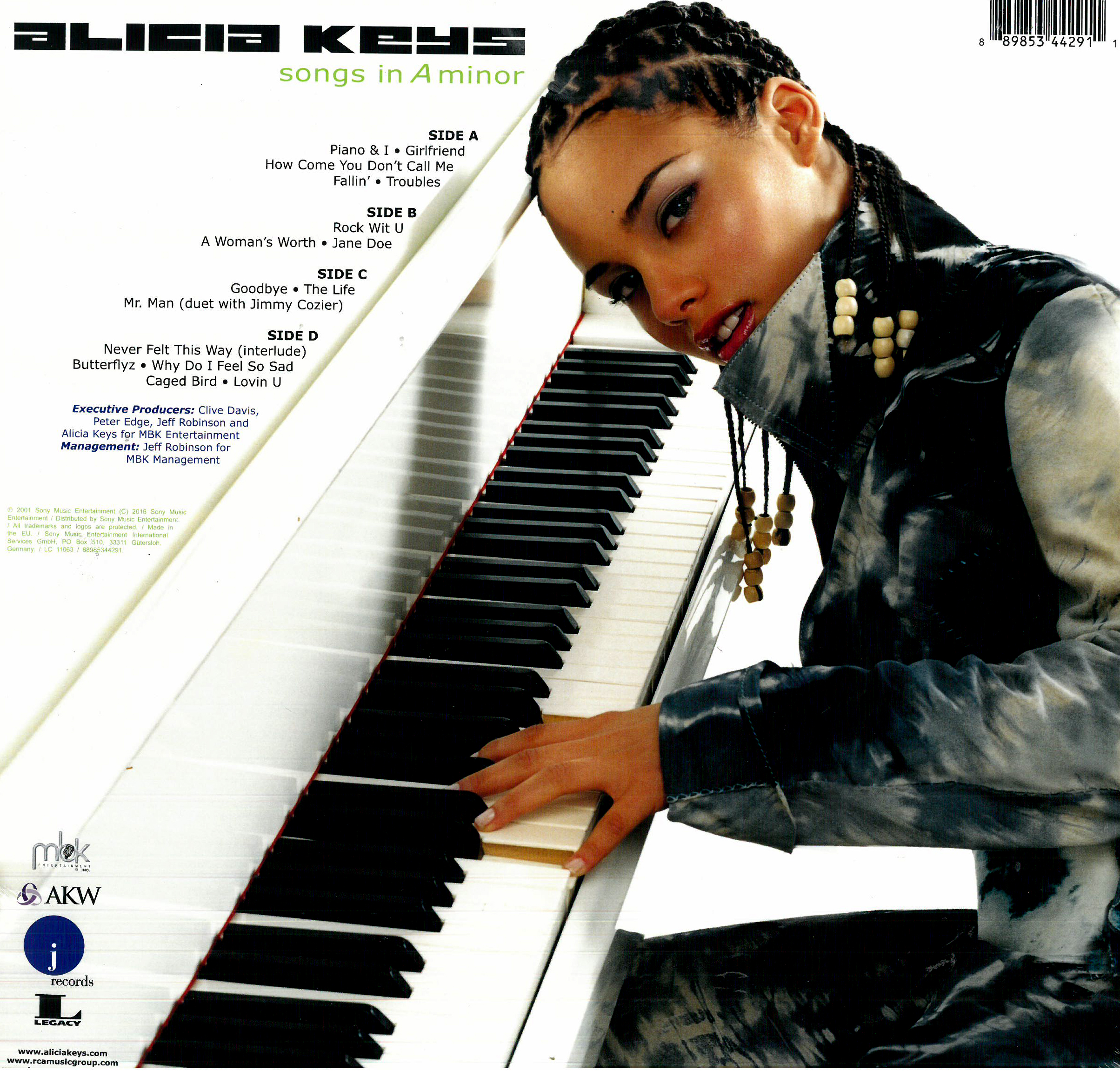 Το Songs in A Minor (2001) είναι ένα ντεμπούτο που εμφανίστηκε σαν ώριμη δήλωση καλλιτεχνικής ταυτότητας, συστήνοντας την Alicia Keys ως μια σύγχρονη soul δημιουργό με βαθιές ρίζες στο κλασικό πιάνο και στο R&B. Ο δίσκος συνδυάζει τη συναισθηματική αμεσότητα της soul με τη σύγχρονη παραγωγή της εποχής, δημιουργώντας έναν ήχο ταυτόχρονα διαχρονικό και μοντέρνο.