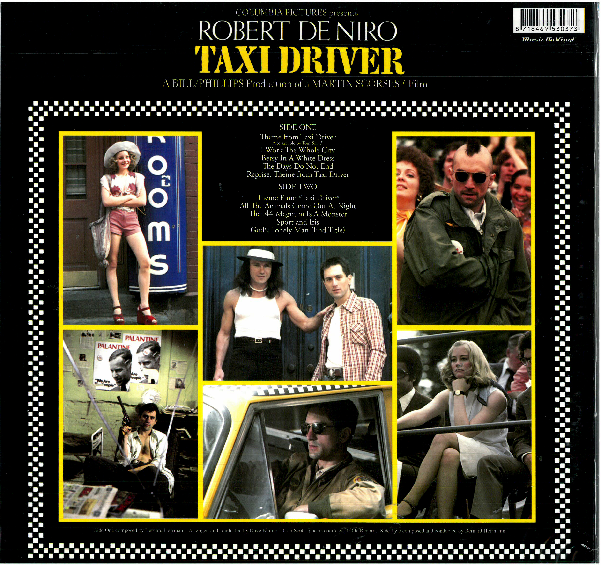 Το soundtrack της ταινίας Taxi Driver, σε μουσική του θρυλικού Bernard Herrmann, αποτελεί ένα από τα σημαντικότερα και πιο αναγνωρίσιμα έργα στην ιστορία του κινηματογράφου. Η μουσική, η οποία ολοκληρώθηκε λίγο πριν τον θάνατο του Herrmann, χαρακτηρίζεται από το μείγμα τζαζ ατμόσφαιρας και σκοτεινής ορχηστρικής γραφής που αποτυπώνει ιδανικά την παρακμή και την απομόνωση της νυχτερινής Νέας Υόρκης. Το θέμα με το σαξόφωνο, σε συνδυασμό με τις βαριές, σχεδόν απειλητικές ενορχηστρώσεις, δημιουργεί μια μοναδική αντίθεση ανάμεσα στη μελαγχολία και την ένταση, αντικατοπτρίζοντας άμεσα την ψυχολογία του Travis Bickle. Ο δίσκος περιλαμβάνει αυθεντικές συνθέσεις μαζί με επανεκτελέσεις και κομμάτια τζαζ εποχής που πλαισιώνουν την ιστορία. Το soundtrack θεωρείται αριστούργημα, τόσο για τη συμβολή του στη δημιουργία της ατμόσφαιρας της ταινίας όσο και ως ξεχωριστό μουσικό έργο, αποτελώντας την τελευταία και μία από τις πιο επιδραστικές δουλειές του Herrmann.