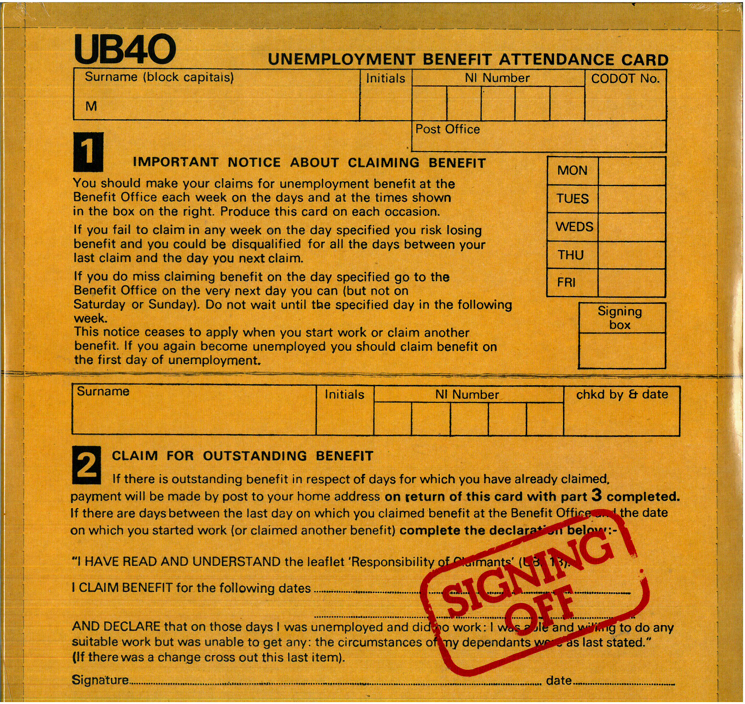 Το Signing Off των UB40 (1980) είναι ένας δίσκος-μανιφέστο που έφερε το βρετανικό reggae από τα περιθώρια στο κέντρο της κοινωνικής πραγματικότητας. Ωμό, πολιτικοποιημένο και βαθιά συνδεδεμένο με την εργατική τάξη της εποχής του, το άλμπουμ αποτυπώνει την οικονομική ασφυξία, την ανεργία και την αποξένωση της Βρετανίας των αρχών του ’80, μέσα από ρυθμούς που δανείζονται τη ζεστασιά της Τζαμάικας αλλά μιλούν με καθαρά αγγλική προφορά.